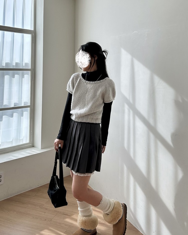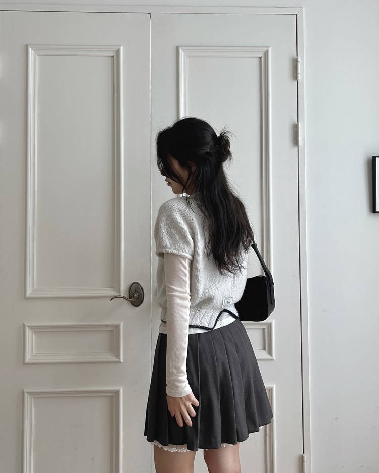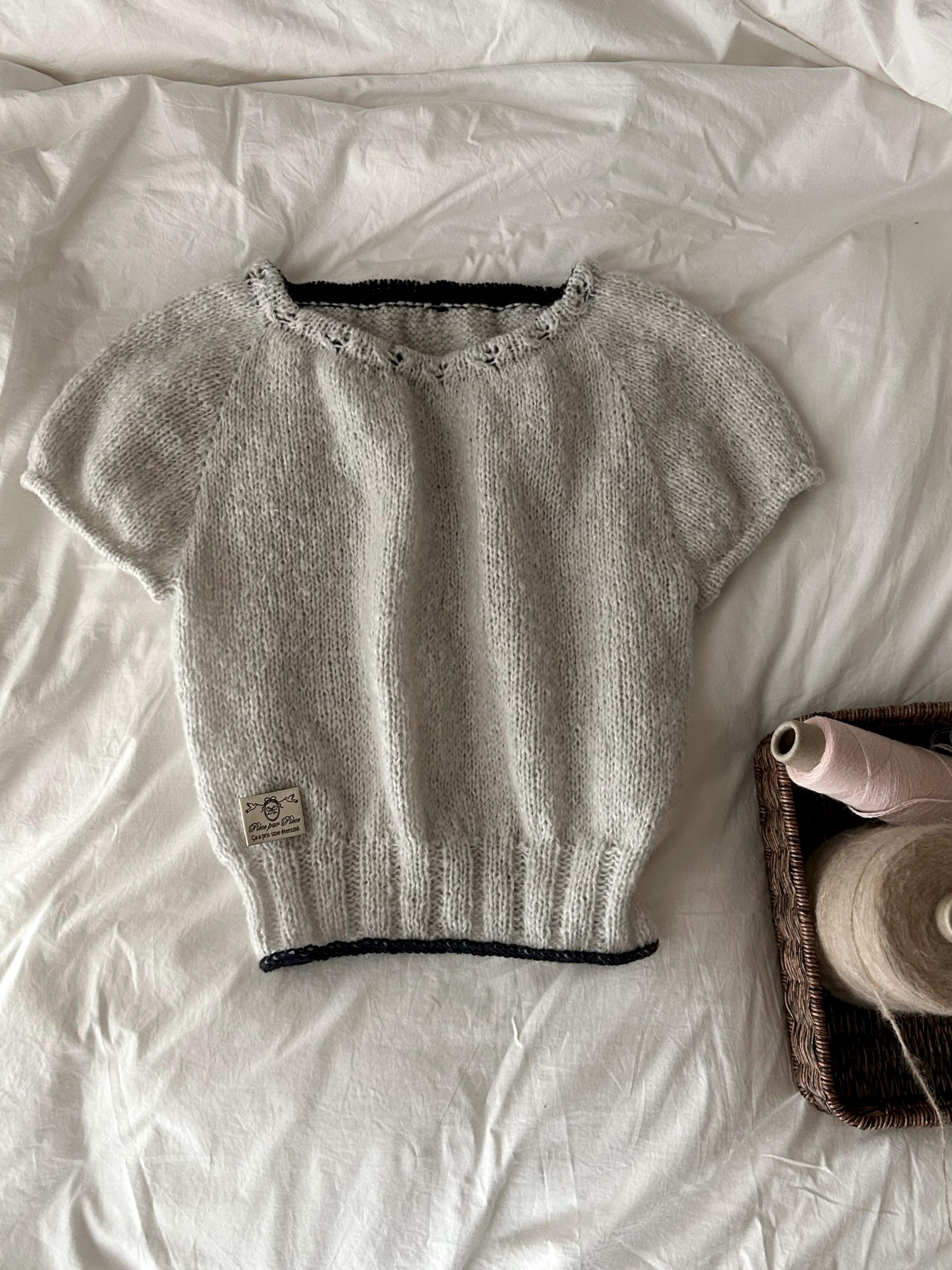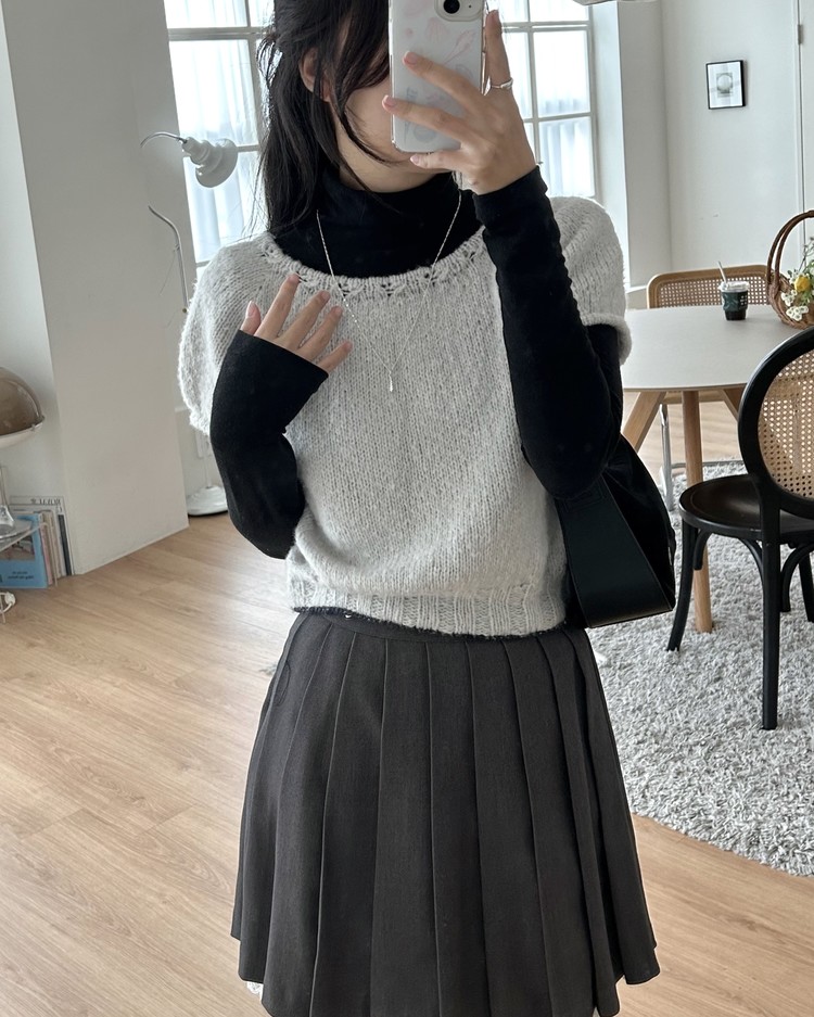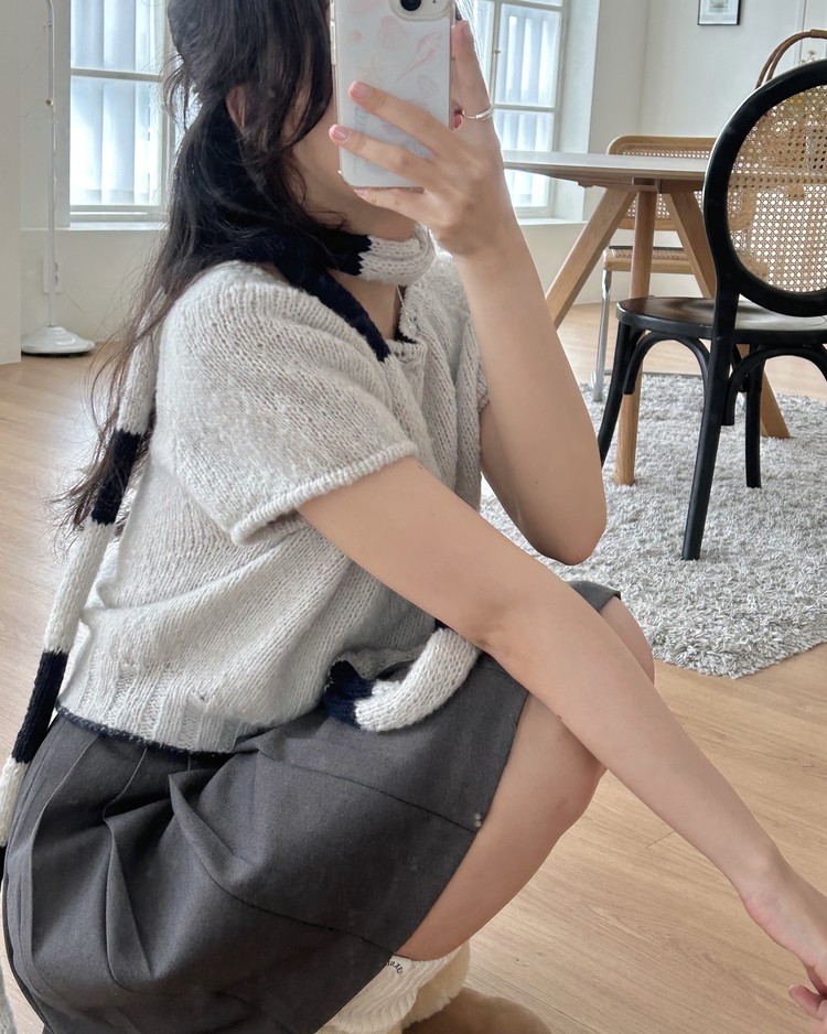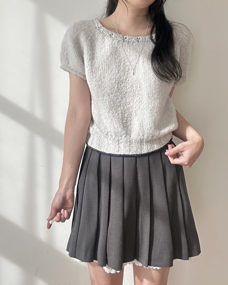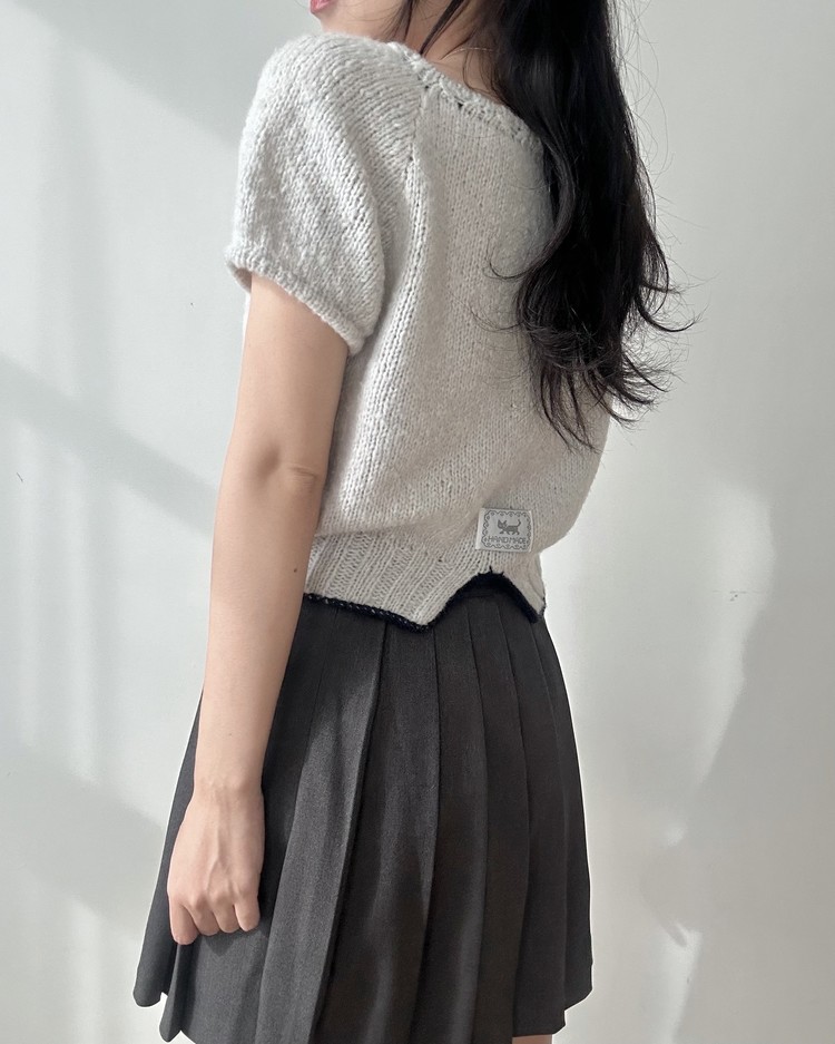 XS사이즈 샘플 – 솜솜뜨개 메모리 폴라그레이 + 다루마 에어리울 알파카 네이비